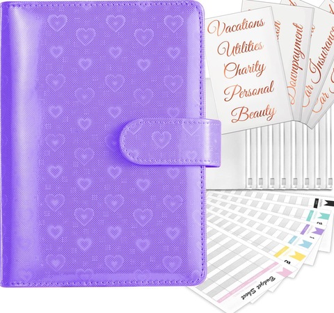 돈 절약 바인더, 예산을 위한 지퍼 봉투, 계산기, 예산 시트 및 현금 봉투가 있는 A6 예산 바인더
